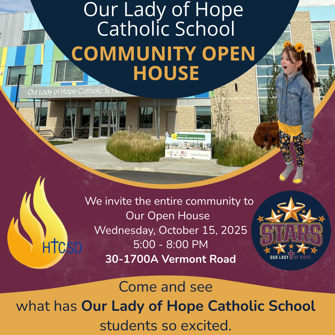 Our Lady of Hope Catholic School Open House Wednesday, October 15, 20255:00 - 8:00 PM30-1700A Vermont Road